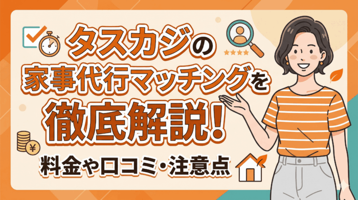 仕事と育児で忙しい30〜40代向けに、家事代行マッチング「タスカジ」のサービス内容を徹底解説!業界最安値水準の料金表や、実際の口コミ、不在時・トラブル対応など、初めて利用する方の疑問を先回りして解決します。