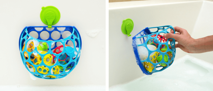 ただ、そこまで大きくないので、おもちゃが少ない時におすすめのアイテム。底が穴があり、水切りもしっかりしてくれます。
