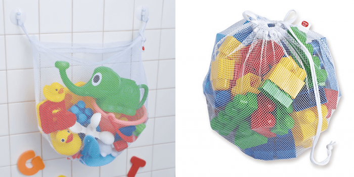 通気性がいいメッシュですが、おもちゃの量が多いと、おもちゃの衛生面が心配に。そんな時に、袋ごと洗剤に浸け置き洗いができる、便利なアイテムです。