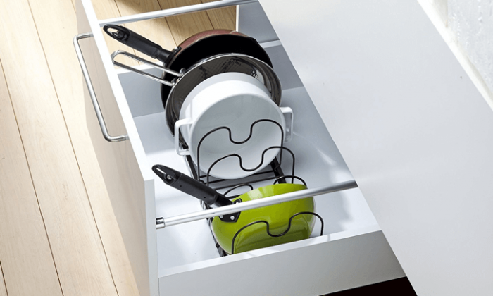 マンションなどのキッチンは限られたスペースしかなく、フライパンや鍋が積み重なりゴチャゴチャに…。