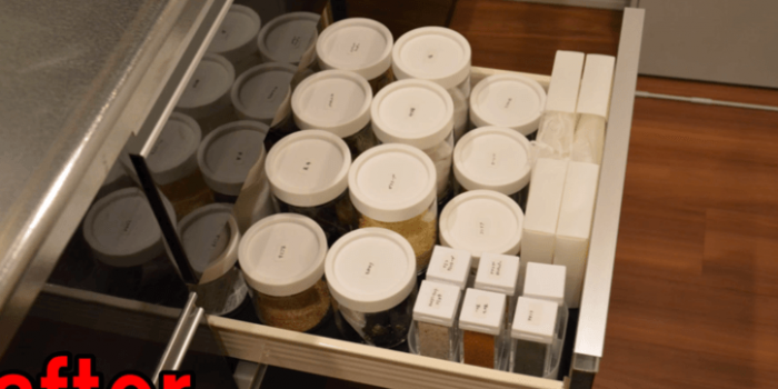 続いては、ごちゃごちゃなる調味料の収納アイデア。