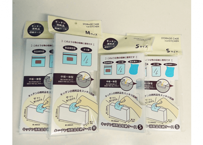 本来は、ビニール袋を入れて使用すれば、縦置きで収納できるグッズです。いろんなサイズがあるので、活躍の幅が広がりそうですね。