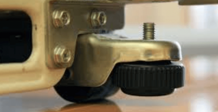 - 調節脚のネジを回し、上がっているキャスターを下ろす