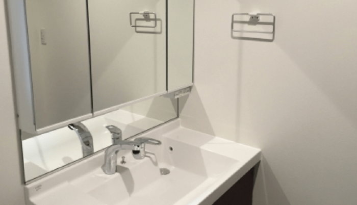 洗面台の三面鏡内のスペースは、仕切りがなく使いにくい場所です。