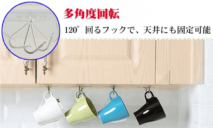 そして、120℃回るフックなので、天井部分や壁部分の両方使えます。