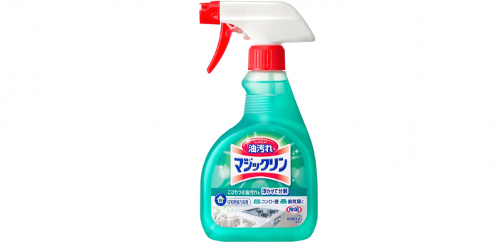 続いて、手順2の洗剤を吹きかける時は、惜しみなくたっぷりコンロにマジックリンをスプレーします。その上に、熱いお湯で死ぽった雑巾でパックし、さらに雑巾の上から追加のマジックリンをスプレーし、20〜30分くらい放置。