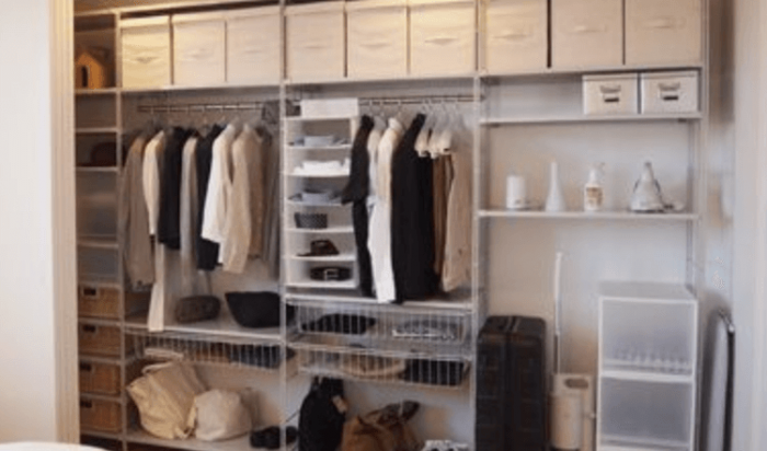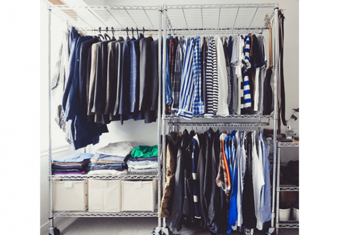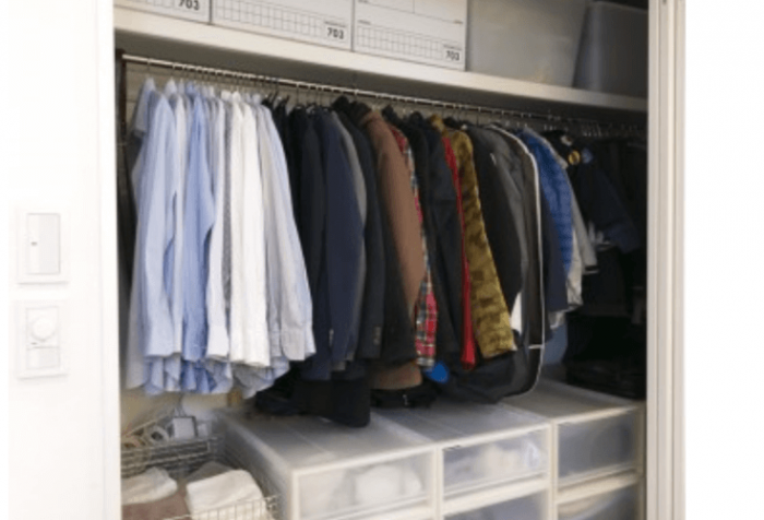 フックがあるラックでもいいし、棚タイプのモノを選べば、シーズンオフの服をまとめてケースにしまうことも可能です。