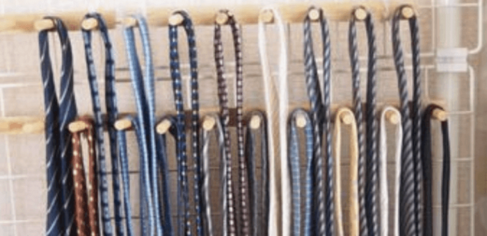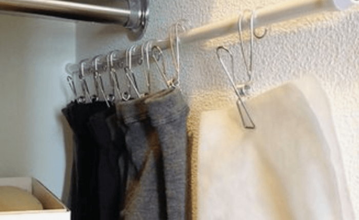 100均の突っ張り棒とクリップを使えば、ネクタイやストール、ベルトなど収納するのにピッタリです。両サイドにしたり、二段にしても◎。