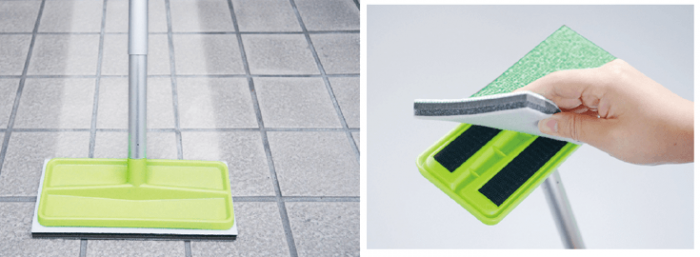 そういう時にあると助かるグッズ。タイルの凸凹にブラシ繊維がしっかり入り込み、吸着繊維で汚れを逃しません。