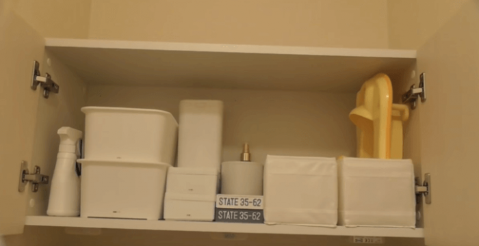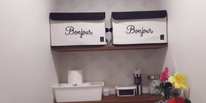 備え付け収納スペースは、高い位置にあることがほとんど。細々したものをそのまま置いておくとゴチャゴチャして、便器に落としてしまった人もいるはずです。